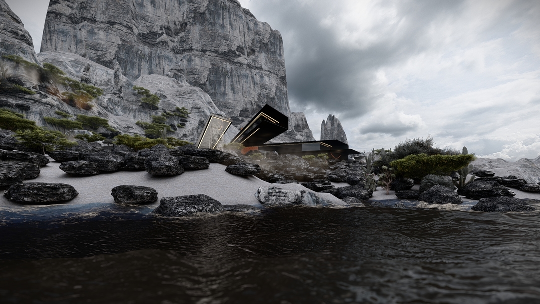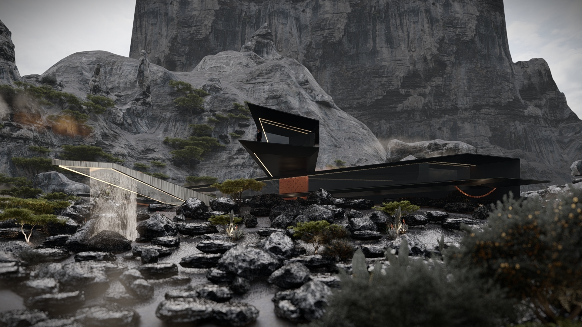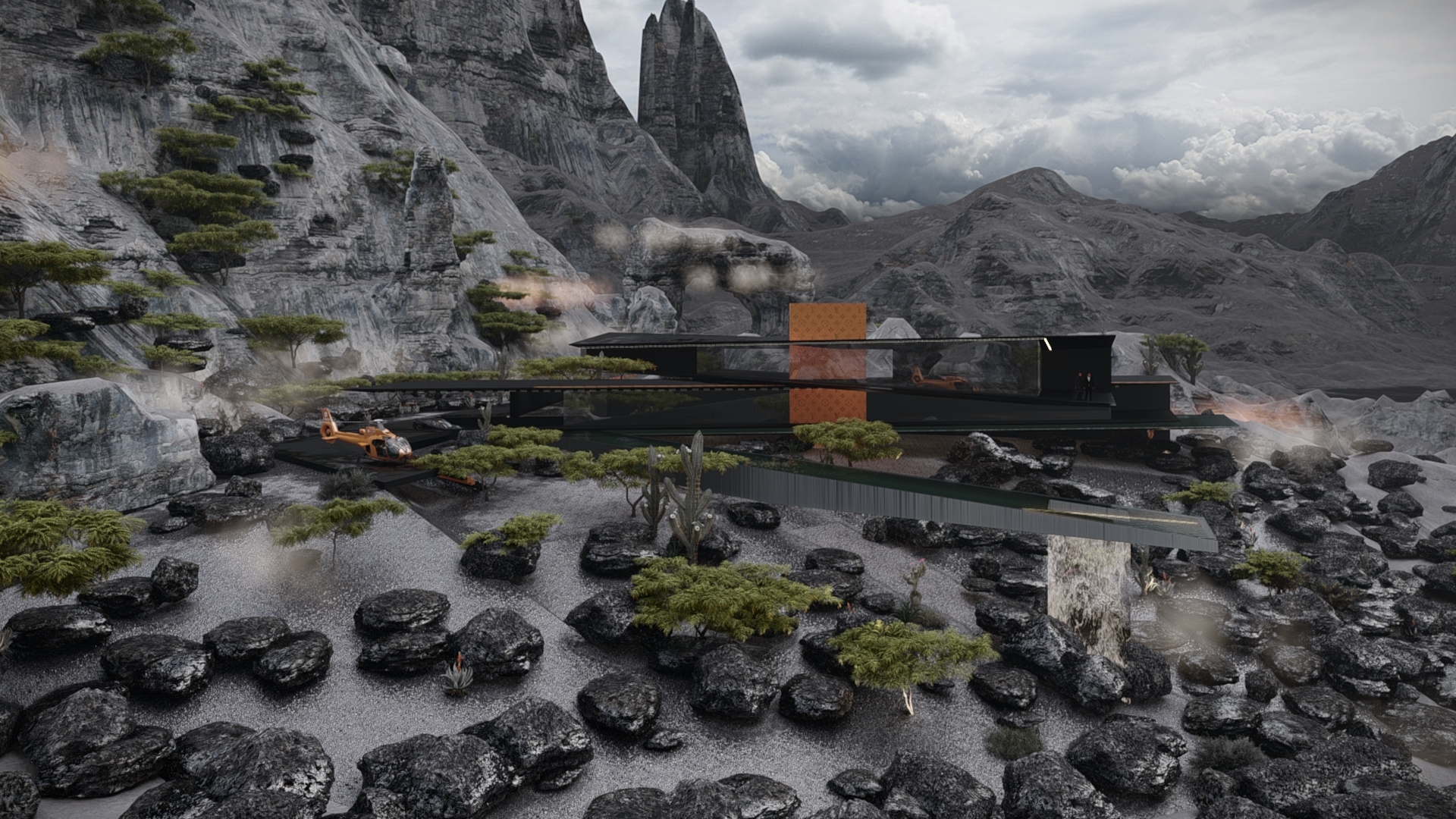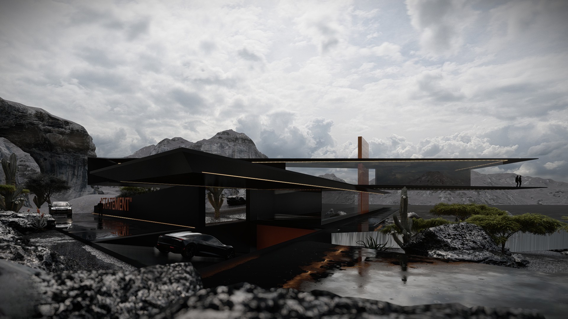 This conceptual residence pays tribute to the legacy of Virgil Abloh through bold, sculptural architecture. Inspired by his groundbreaking work for Louis Vuitton and Off-White, the design combines oversized cantilevers, sleek minimalism and subtle luxury. Signature elements like orange accents, chain details, and “STATEMENT” typography are integrated into the architecture, blurring the lines between fashion, art and space. Set in a dramatic desert landscape, the villa reflects Abloh’s visionary approach to design, disruptive, refined and deeply expressive.