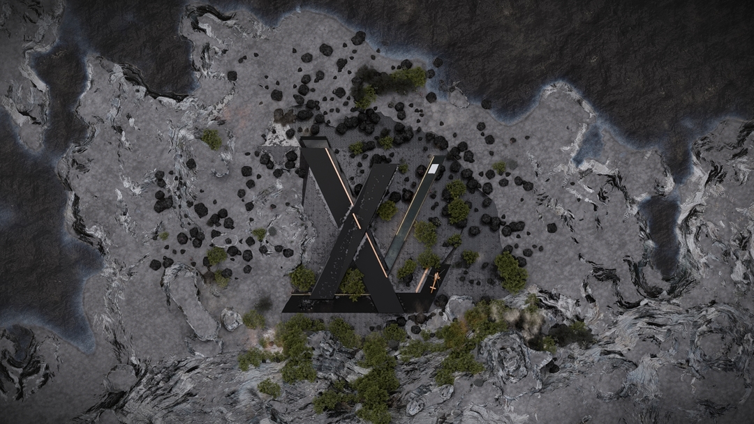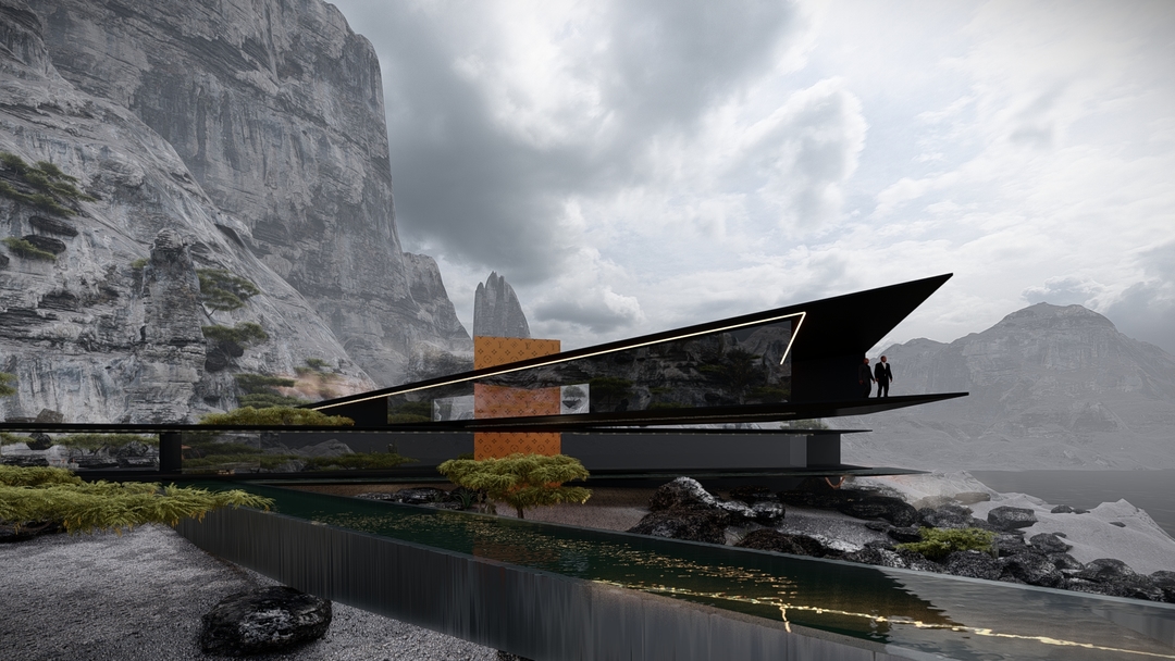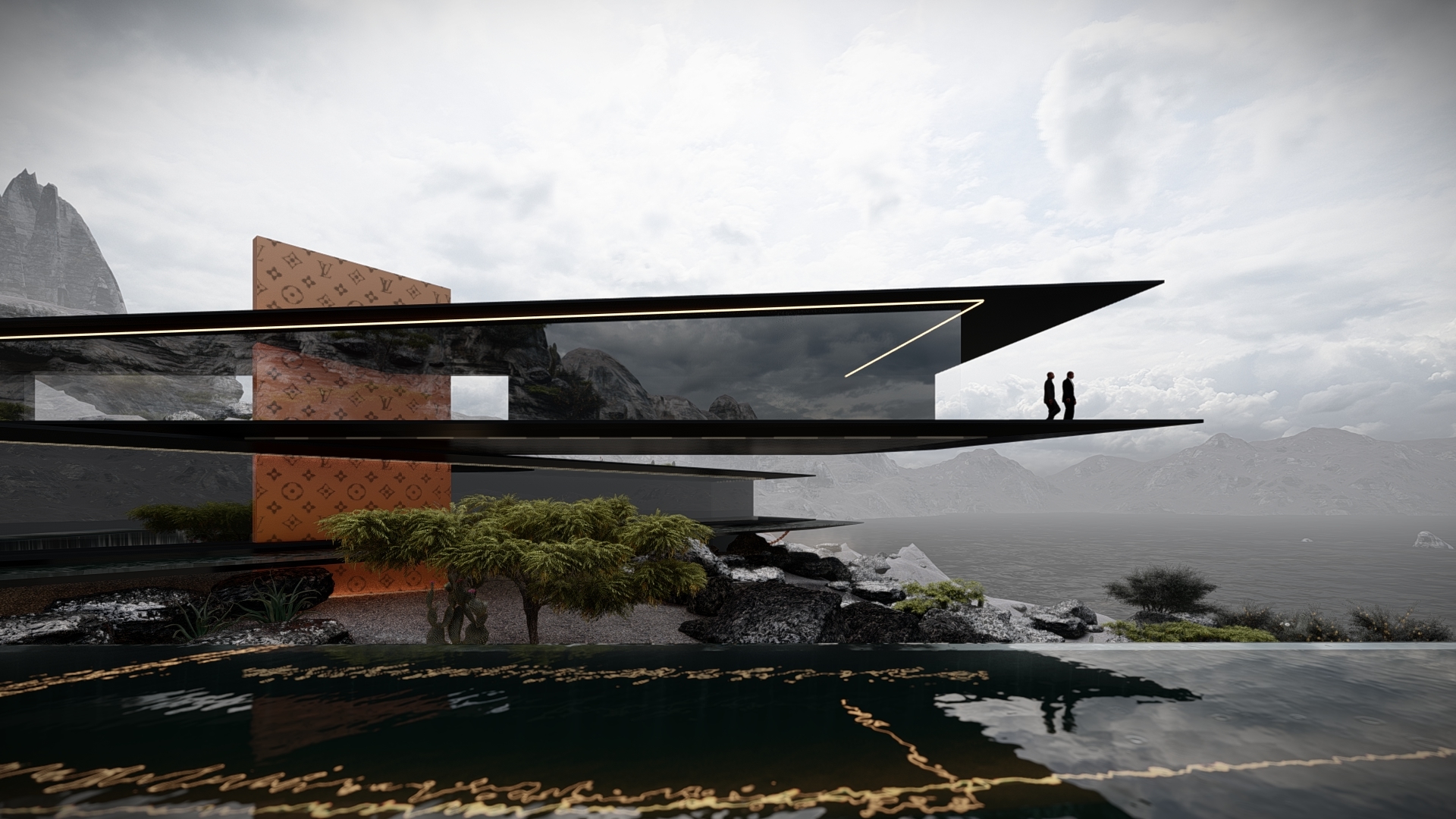 Bold forms, dramatic cantilevers and minimal detailing define this conceptual residence in the desert. The design incorporates elements from Virgil Abloh’s world, from Off-White statements and Louis Vuitton motifs to striking orange accents and chain details. A seamless blend of architecture, fashion and landscape that celebrates creative freedom and visionary thinking.