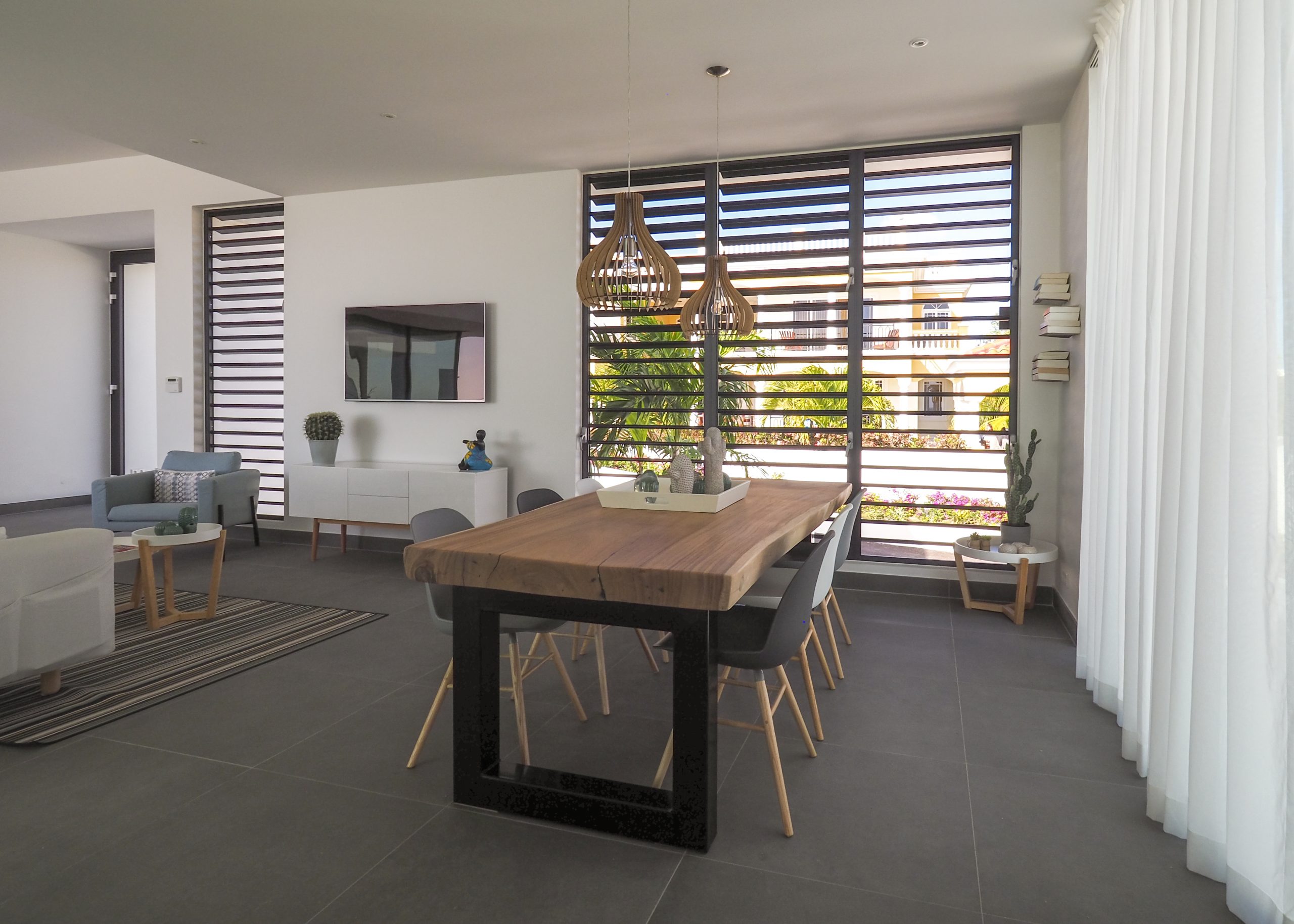 Blending spaces in the interior design is a concept that aims to create a seamless transition between different areas of a home or building, allowing for a more open, fluid and interconnected environment. The focus is on breaking down barriers and creating a sense of continuity, which often involves merging indoor and outdoor spaces.